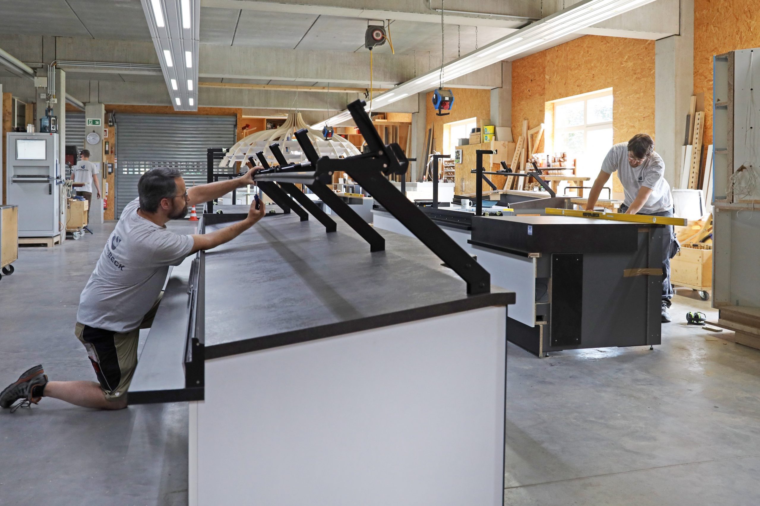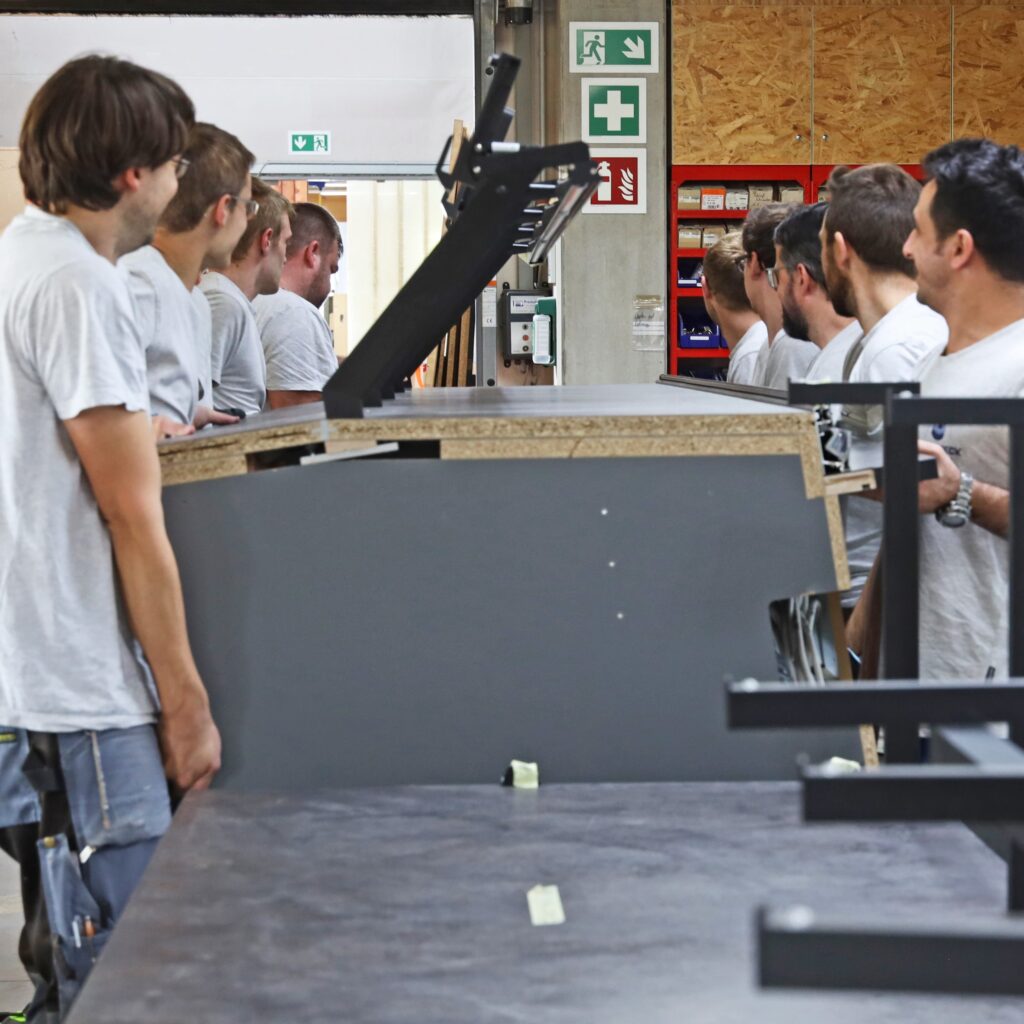 Moderne Ladeneinrichtungen bauen auf den Grundpfeilern von exakter Planung, hochwertigen Materialien, einem Höchstmaß an handwerklichem Können und präziser Technologie. Als Meisterbetrieb setzen wir in der Schreinerei „Kiefer & Beck“ mit unserem 40-köpfigen Team aus qualifizierten Facharbeitern auf 2.400 m² Kundenwünsche auf den Millimeter genau um.