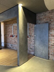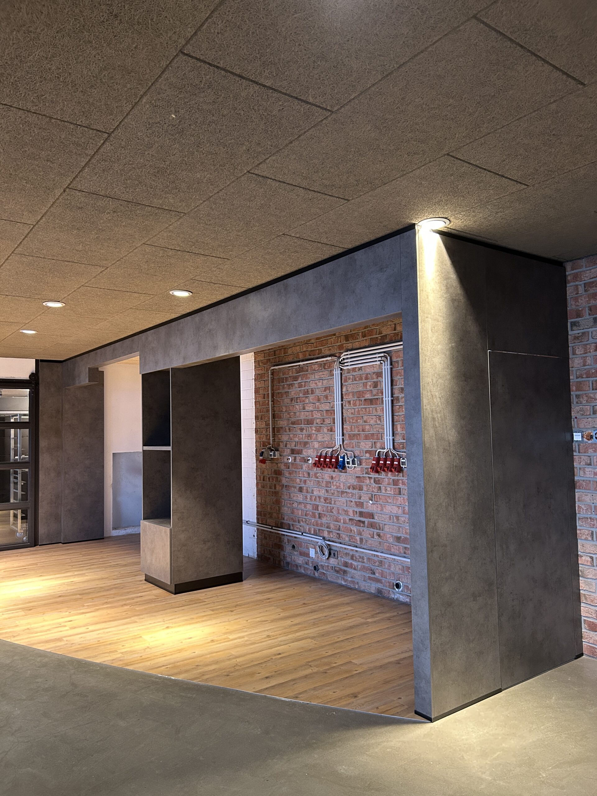 Im Showroom von Wachtel Gmbh in Hilden, durften wir jüngst eine passende Wandabwicklung nach Maß installieren. Für den einheitlichen und passenden Industrie-Style natürlich in dunkelgrauem Betonlook.