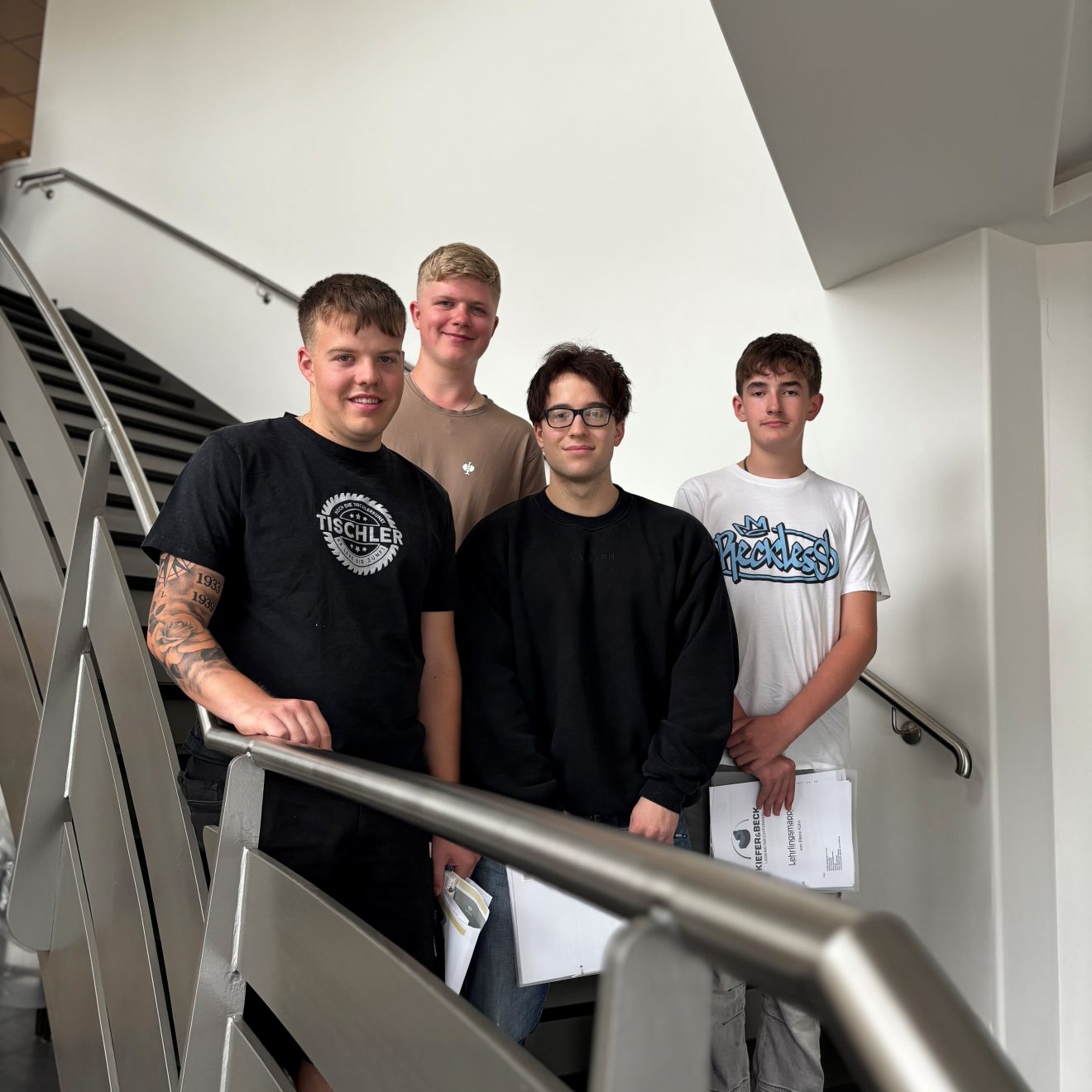 👉 Drei motivierte Auszubildende, die den Beruf des Schreiners von Grund auf lernen möchten.